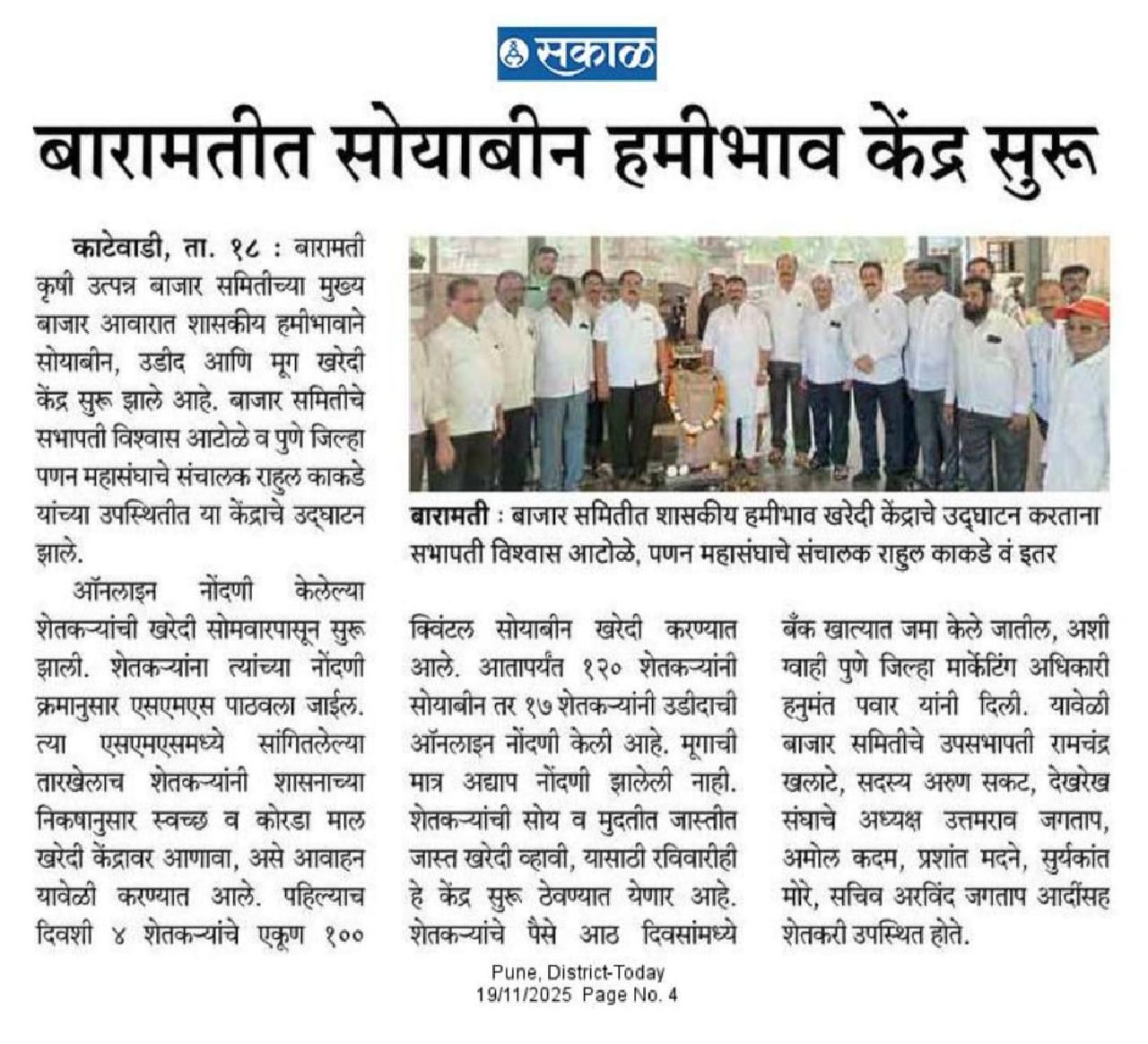 बारामती बाजार समितीत सोयाबीन खरेदी केंद्र सुरू २०२४