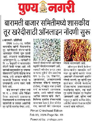 बारामती बाजार समितीमध्ये शसकीय तूर खरेदी ऑनलाइन नोंदणी सुरु